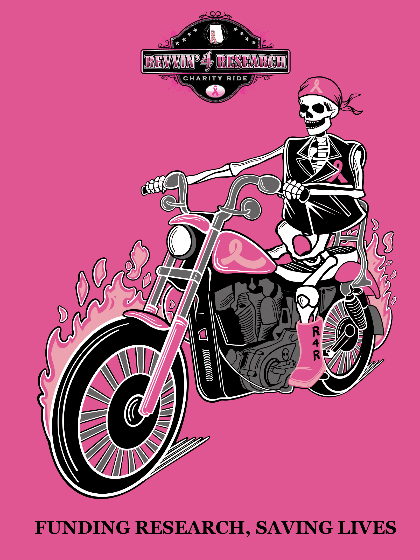 With this design, I was asked specifically to make a breast cancer t-shirt with a motorcycle and skeleton for the annual bikeride BCRFA provides. They specifically wanted me to use their pink, black, and white colors. Additionally they provided thier charity logo and wanted it somewhere above my design.